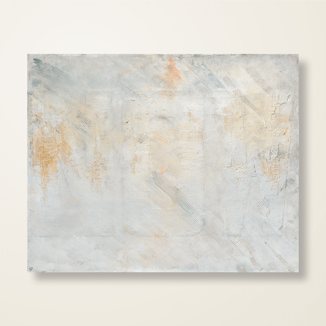“Now” invites a return to presence, the quiet, powerful gift of being fully here. Inspired by The Way of the Peaceful Warrior and the simple exchange, “What time is it? Now,” this creation explores the richness held in each moment. Crackle textures, layered golds, and the Time Collection palette reflect the emotional and experiential layers that exist simultaneously in life. Hand-stamped scripture and imperfect lines nod to the beauty of impermanence and release. Created for the Shevlin Crossing Gallery, this work gently draws the viewer inward, offering a pause from momentum and an invitation to notice what is unfolding right in front of them, right now.